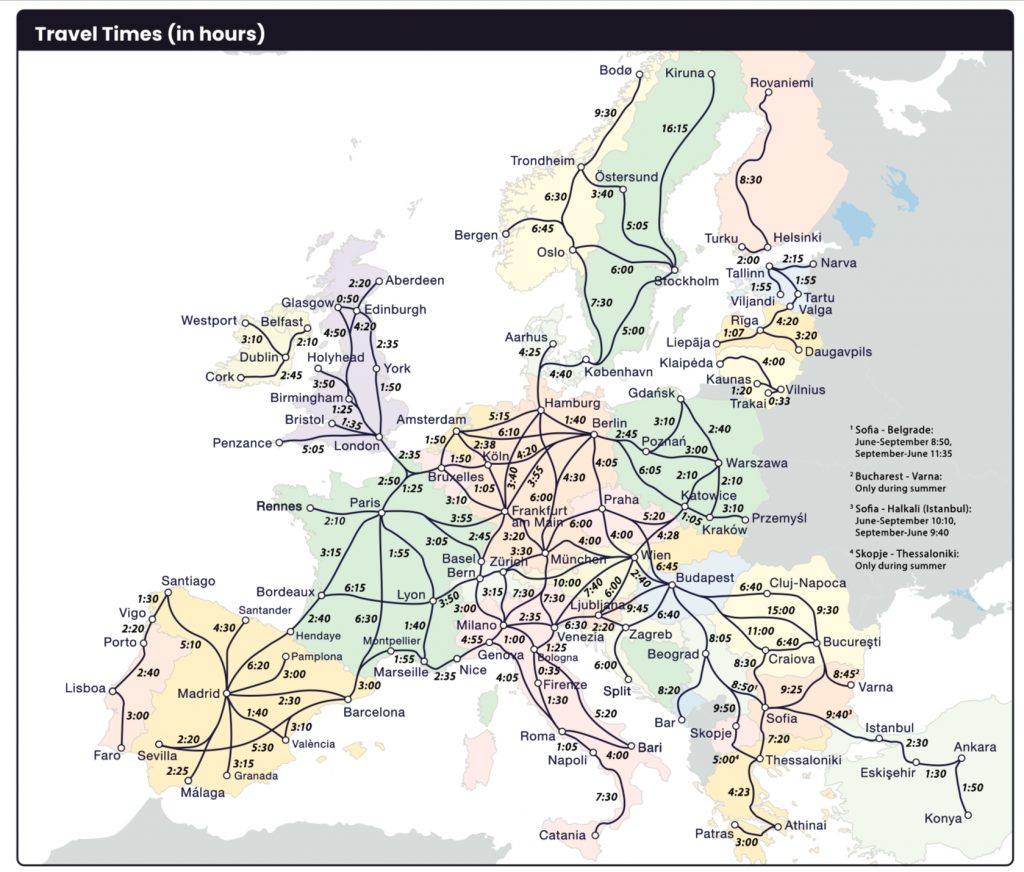 - Le pass Interrail est réservé au citoyen·nes européen·nes, pour les autres il faut prendre un pass Eurail, qui fonctionne sur le même principe.